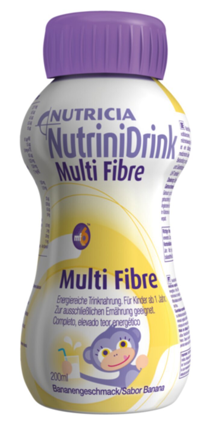 NutriniDrink Multi Fibre ist eine hochkalorische, vollbilanzierte und ballaststoffhaltige Trinknahrung mit Bananengeschmack die speziell für Kinder ab 1 Jahr geeignet sind.