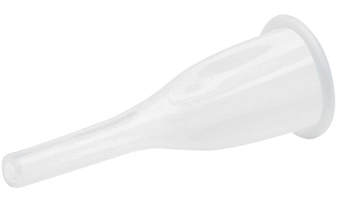 Synthetik-Kondom zum Anschluss an Urin-Auffangbeutel mit und ohne Adapter. Fixierung mit Synthetik-Hautkleber oder doppelseitigem Klebeband.